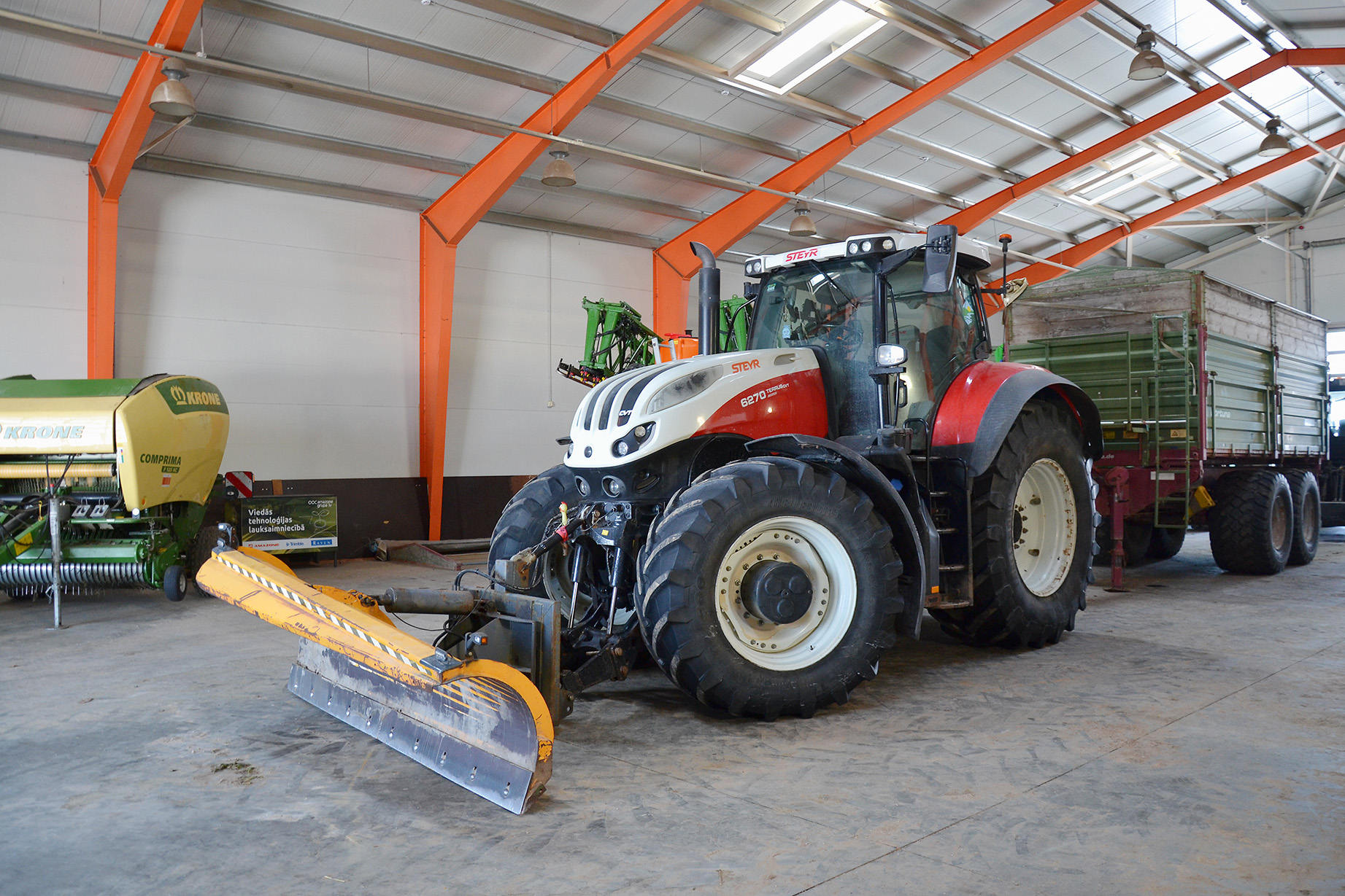 Augu aizsardzībai un mēslošanai lietojam Amazone tehniku: UX 5201 smidzinātāju (36 m), ZA-TS 4200 izkliedētāju un ZG-B piekabināmo izkliedētāju kaļķošanai.