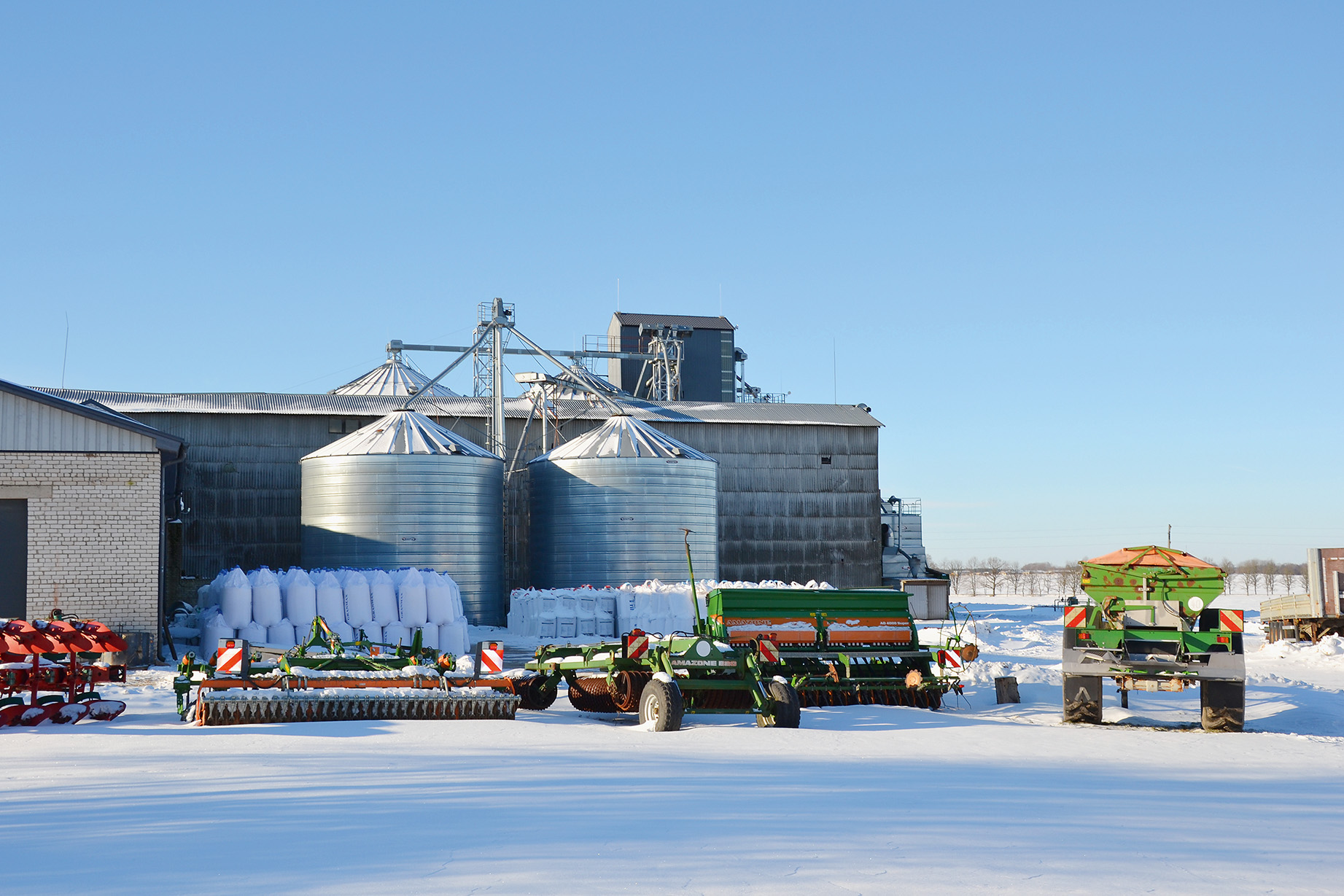 Aptuveni divās trešdaļās platību tiek izmantota bezaršanas tehnoloģija ar minimālu augsnes apstrādi. Pēc aršanas ar Amazone pieckorpusu arklu parasti seko apstrāde ar Amazone Catros 7 metru disku kultivatoru vai sēšana ar Amazone AD 4000 sējmašīnas un frēzes kombināciju. Lielākā daļa platību tiek apsēta ar Amazone Cirrus 6002 sešmetrīgo sējmašīnu ar diskiem. Augsnes apstrādei ir arī Amazone Cenius 4003 zaru kultivators un Amazone veltņi.